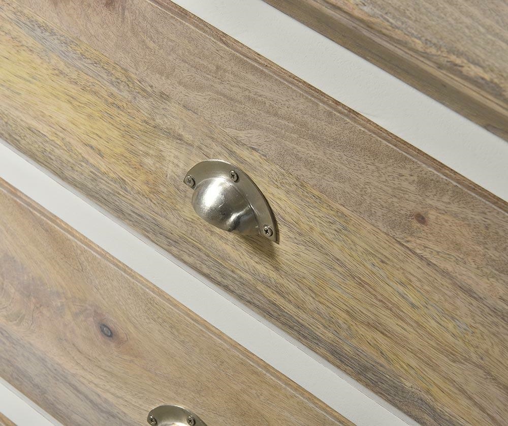 Pojemna komoda wykonana z połączenia gatunków drewna wysokiej jakości – egzotycznego mango, akacji oraz z płyty MDF.