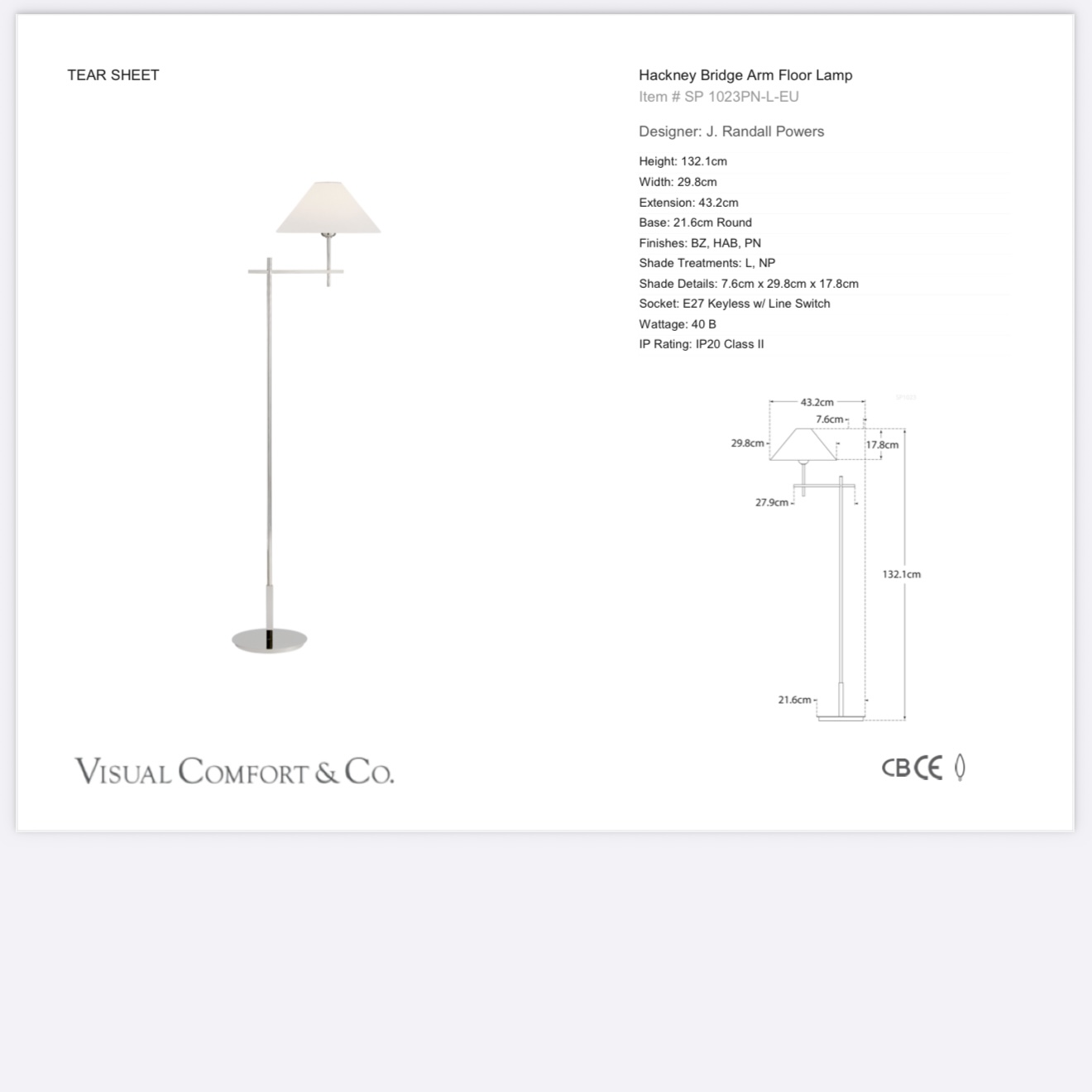 Marina Maison » Visual Comfort » Lampa podłogowa Hackney Bridge Arm w polerowanym niklu z lnianym kloszem