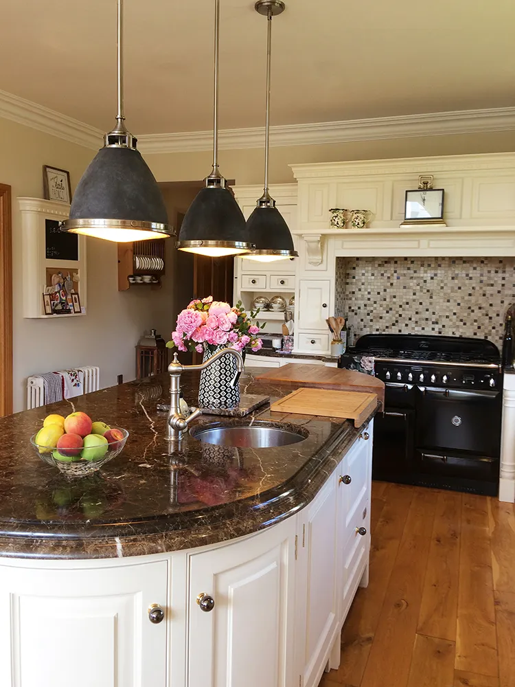 Lampa wisząca Amelia czerpie inspirację ze stylu retro ze swoim szklanym dyfuzorem i ozdobnymi metalowymi pierścieniami. Dostępne jest pięć wariantów wykończenia — chrom, stary cynk, polerowany antyczny nikiel, polerowany nikiel oraz ciemny brąz. Wariant w kolorze chromu dostępny jest w dwóch rozmiarach — małym i średnim.
