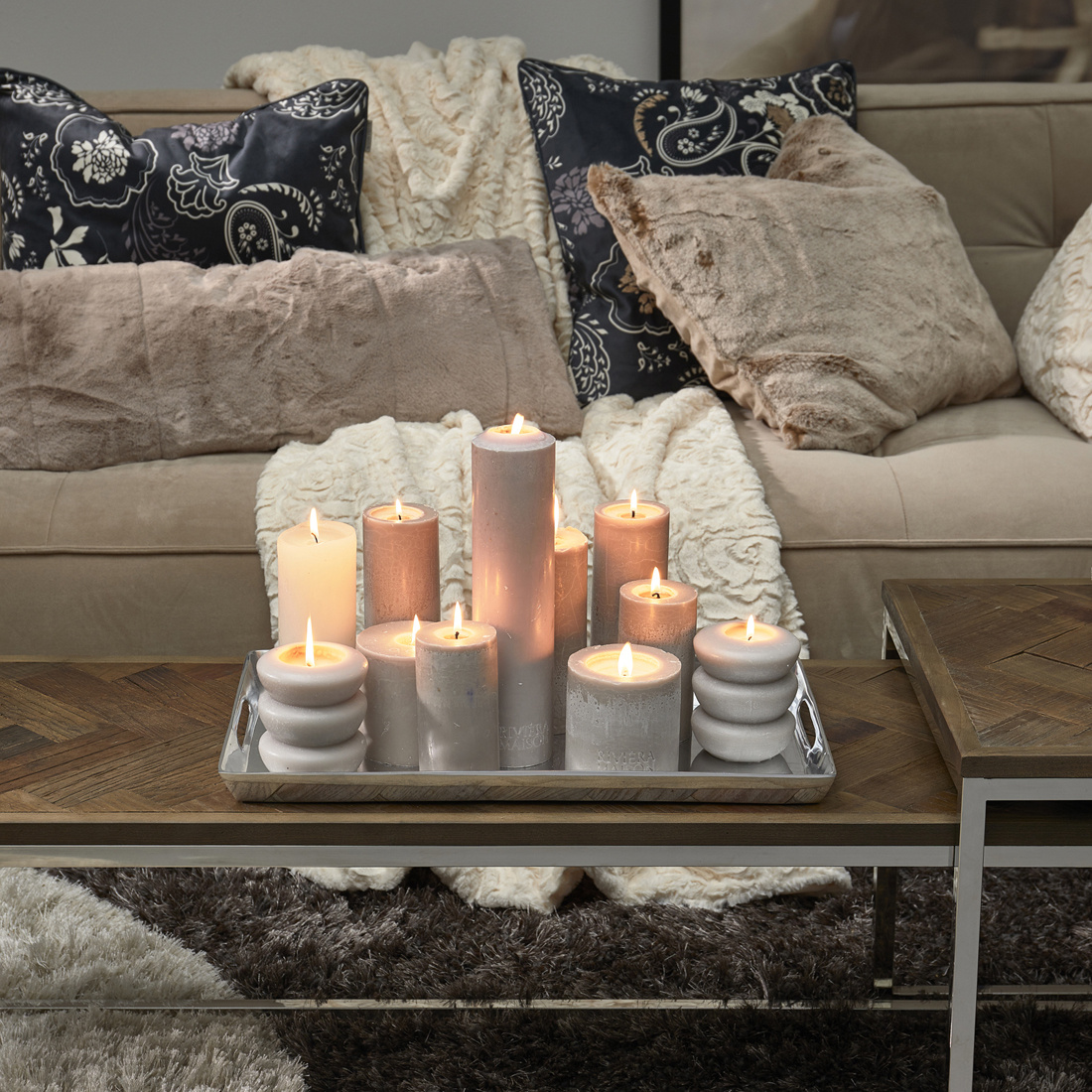 Ekologiczna świeca blokowa w piaskowym kolorze pali się inaczej niż świeca parafinowa. Ta świeca w kolorze piaskowym jest wykonana ze stearyny, dzięki czemu płomień pali się wyżej i jaśniej. Świece mają ziarnisty efekt kolorystyczny, który nadaje im kolumnowy wiejski wygląd.